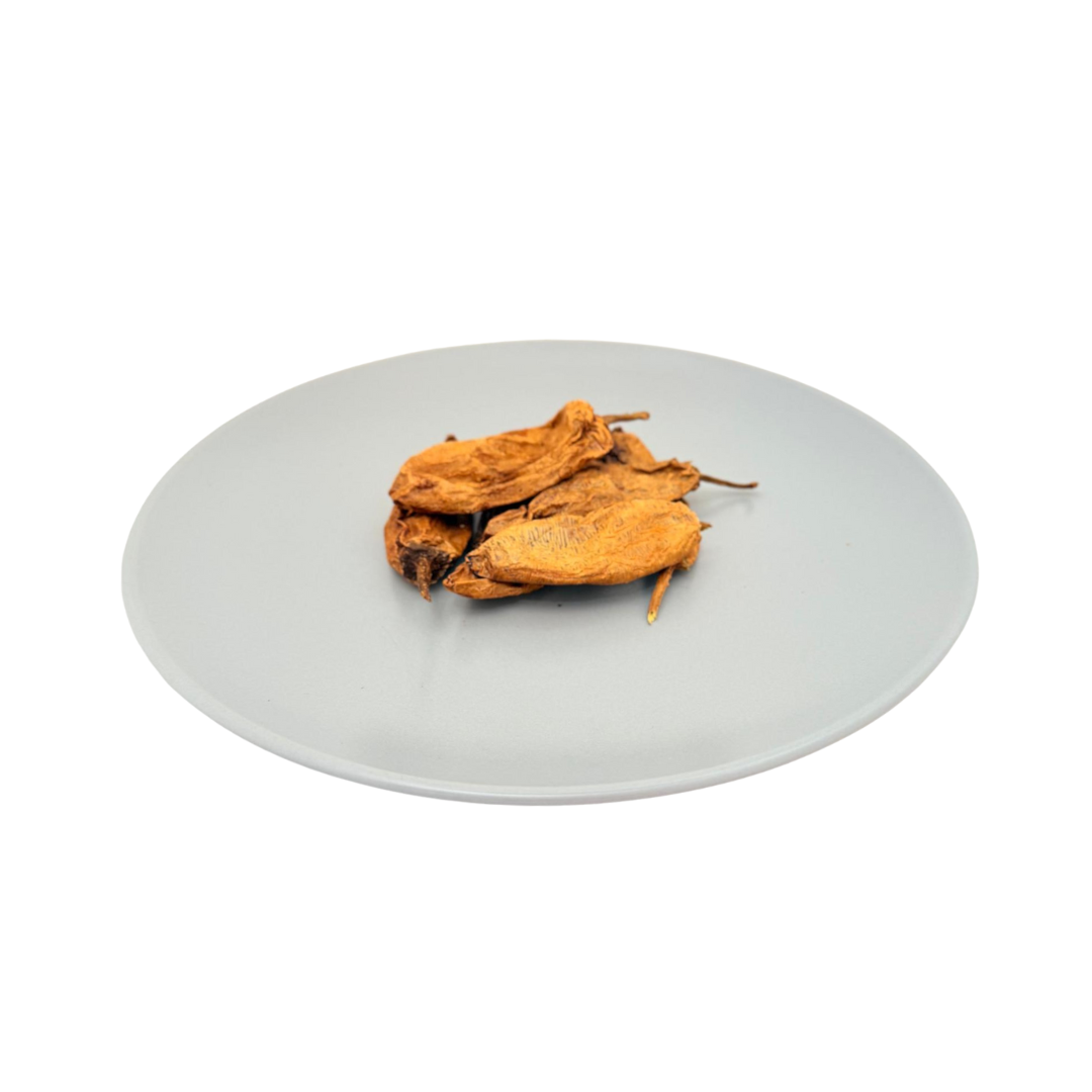 Vor der Verwendung leicht einweichen oder direkt in Saucen, Eintöpfe oder Marinaden geben. Die Schärfe und das Raucharoma entfalten sich beim Kochen.