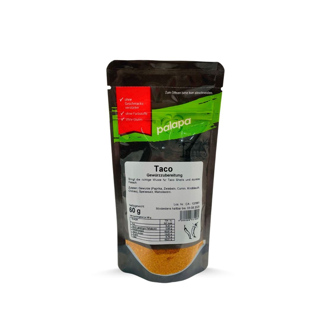 Egal, ob Sie traditionelle Fleisch-Tacos, vegetarische Variationen oder sogar Meeresfrüchte-Tacos zubereiten, unsere Gewürzmischung ist die perfekte Wahl, um Ihre Kreationen auf ein neues Niveau zu heben. Mit jeder Prise Palapa Taco Gewürzmischung bringen Sie den unverwechselbaren Geschmack Mexikos direkt in Ihre Küche.