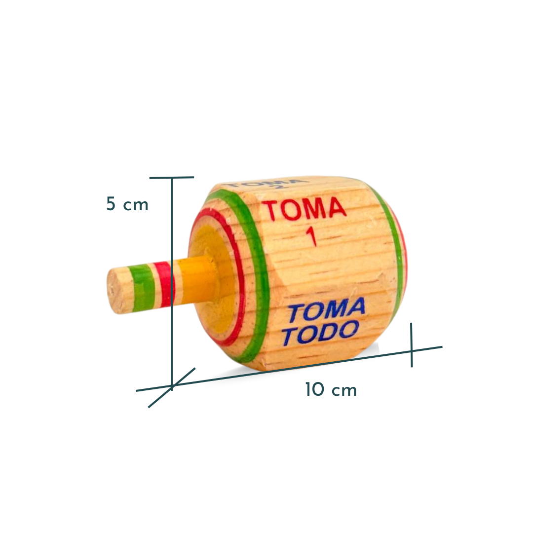 - Spaß, Spannung & Glück: Tama Todo ist mehr als ein einfacher Kreisel – es ist ein unterhaltsames Glücksspiel, bei dem die Spieler Bohnen, Süßigkeiten oder kleine Münzen setzen. Die auf dem Kreisel eingravierten Befehle („Toma todo“, „Pon uno“, „Toma uno“, „Todos ponen“) bestimmen den Spielverlauf.